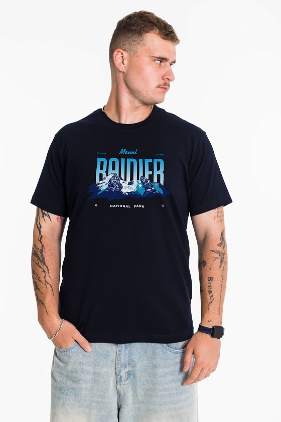 Мужская футболка с принтом изготовлена из хлопкового полотна с добавлением лайкры, что обеспечивает комфорт и хорошую воздухопроницаемость. Футболка имеет короткий рукав и круглый вырез горловины, что придает ей классический стильный вид. Изготовленная из натуральной ткани, футболка обеспечит комфорт в течение всего дня.