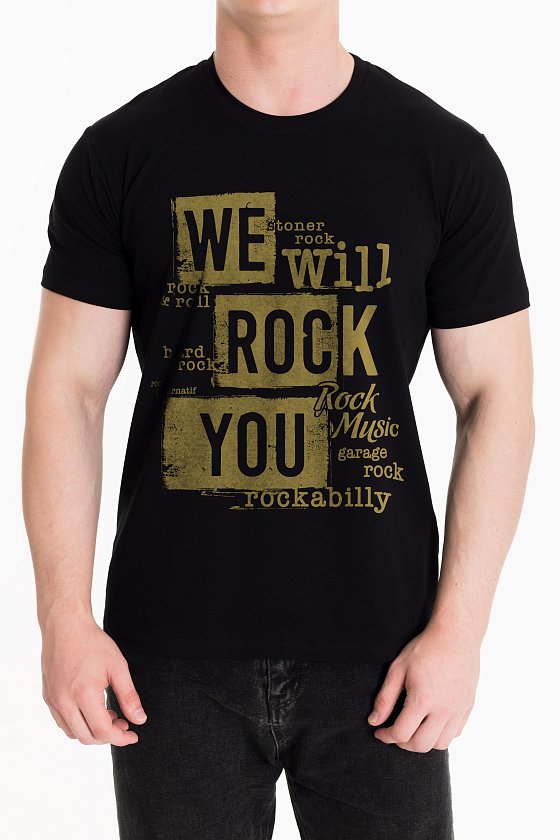 Мужская футболка с принтом выполнена из однотонного х/б полотна с лайкрой. Рукав короткий, втачной, горловина имеет круглый вырез.