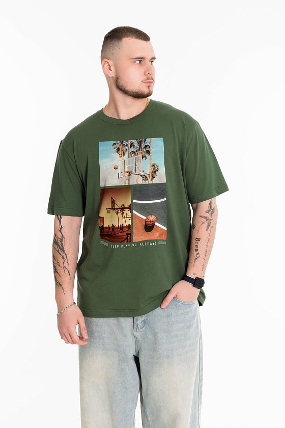 Мужская футболка с принтом изготовлена из хлопкового полотна - что обеспечивает комфорт и хорошую воздухопроницаемость. Футболка имеет короткий рукав и круглый вырез горловины, что придает ей классический стильный вид. Такая модель футболки отлично сочетается с джинсами или брюками. Изготовленная из натуральной ткани, футболка обеспечит комфорт в течение всего дня.
