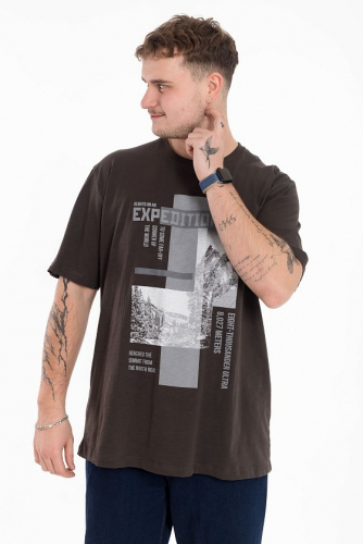 Мужская футболка из хлопкового полотна с добавлением лайкры прекрасно подойдет для создания стильного и удобного образа. Футболка имеет прямой крой, короткий рукав и круглый вырез горловины, которые обеспечивают комфорт и свободу движений. Спереди нанесён принт.