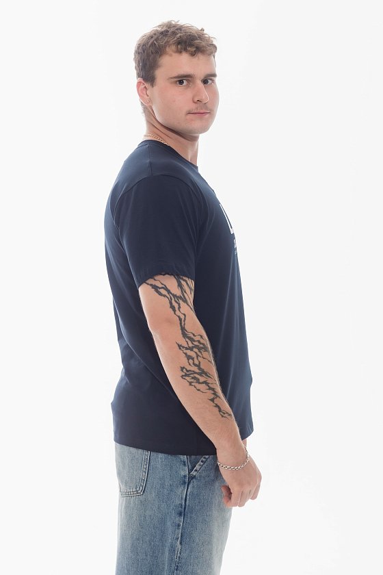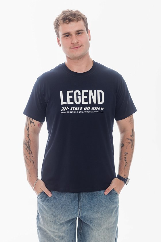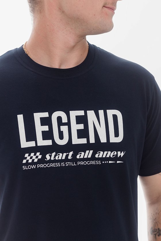 Мужская футболка из хлопкового полотна с добавлением лайкры прекрасно подойдет для создания стильного и удобного образа. Футболка имеет прямой крой, короткий рукав и круглый вырез горловины, которые обеспечивают комфорт и свободу движений. Спереди нанесён принт.