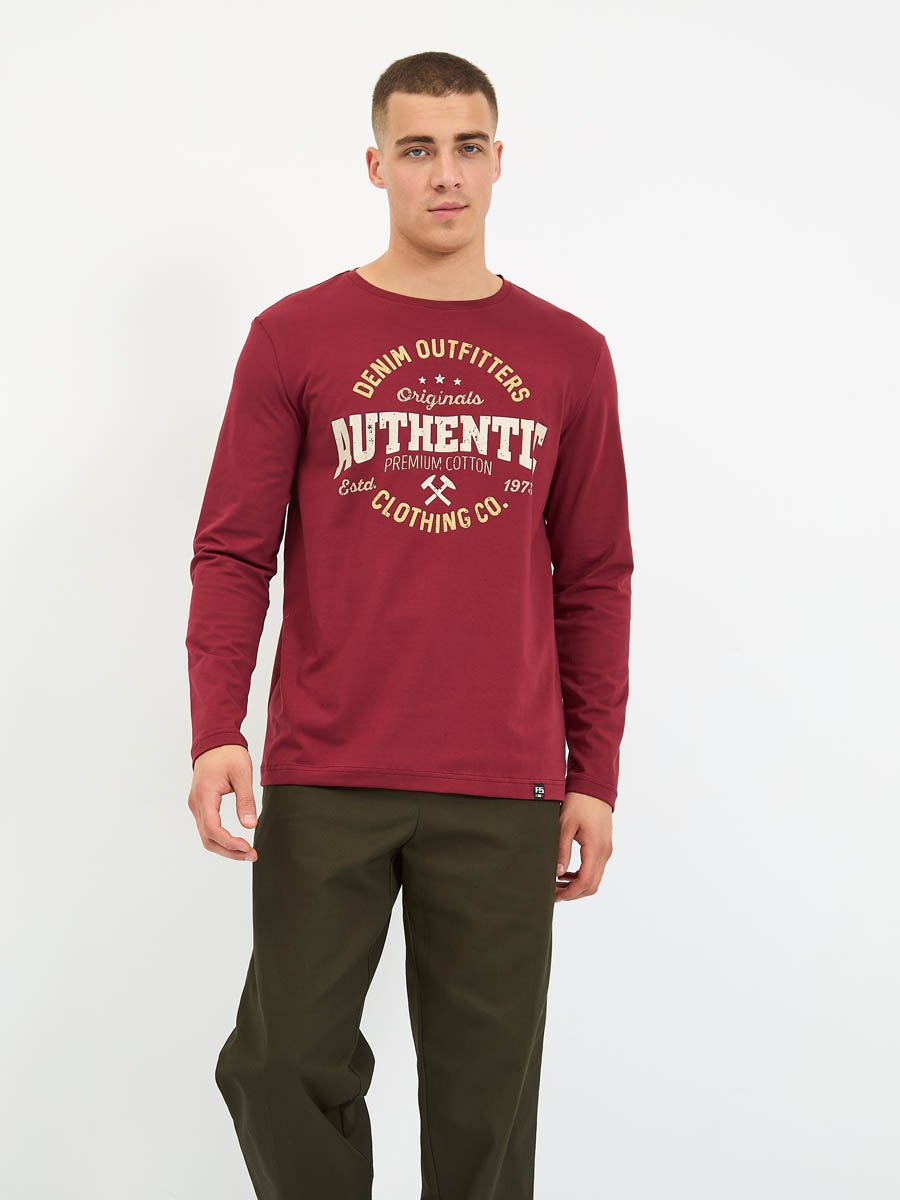 Мужская футболка F5, Regular fit (полуприлегающий силуэт), круглый вырез горловины, длинный рукав. Выполнена из классического трикотажного полотна.