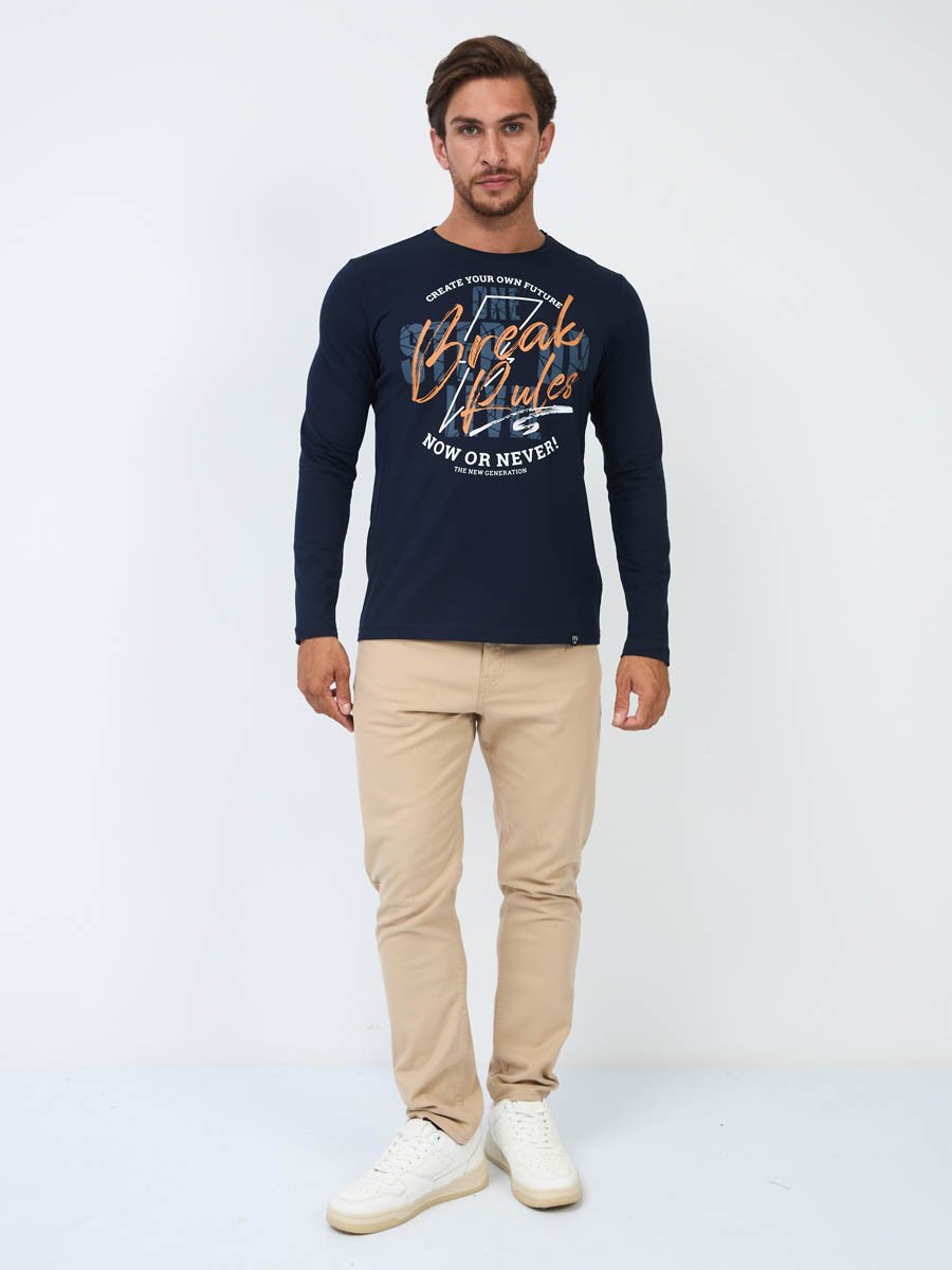 Мужская футболка F5, Regular fit (полуприлегающий силуэт), круглый вырез горловины, длинный рукав. Выполнена из классического трикотажного полотна.