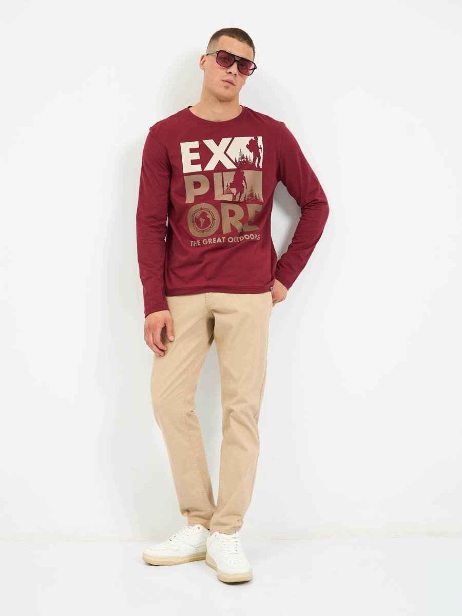 Мужская футболка F5, Regular fit (полуприлегающий силуэт), круглый вырез горловины, длинный рукав. Выполнена из классического трикотажного полотна.