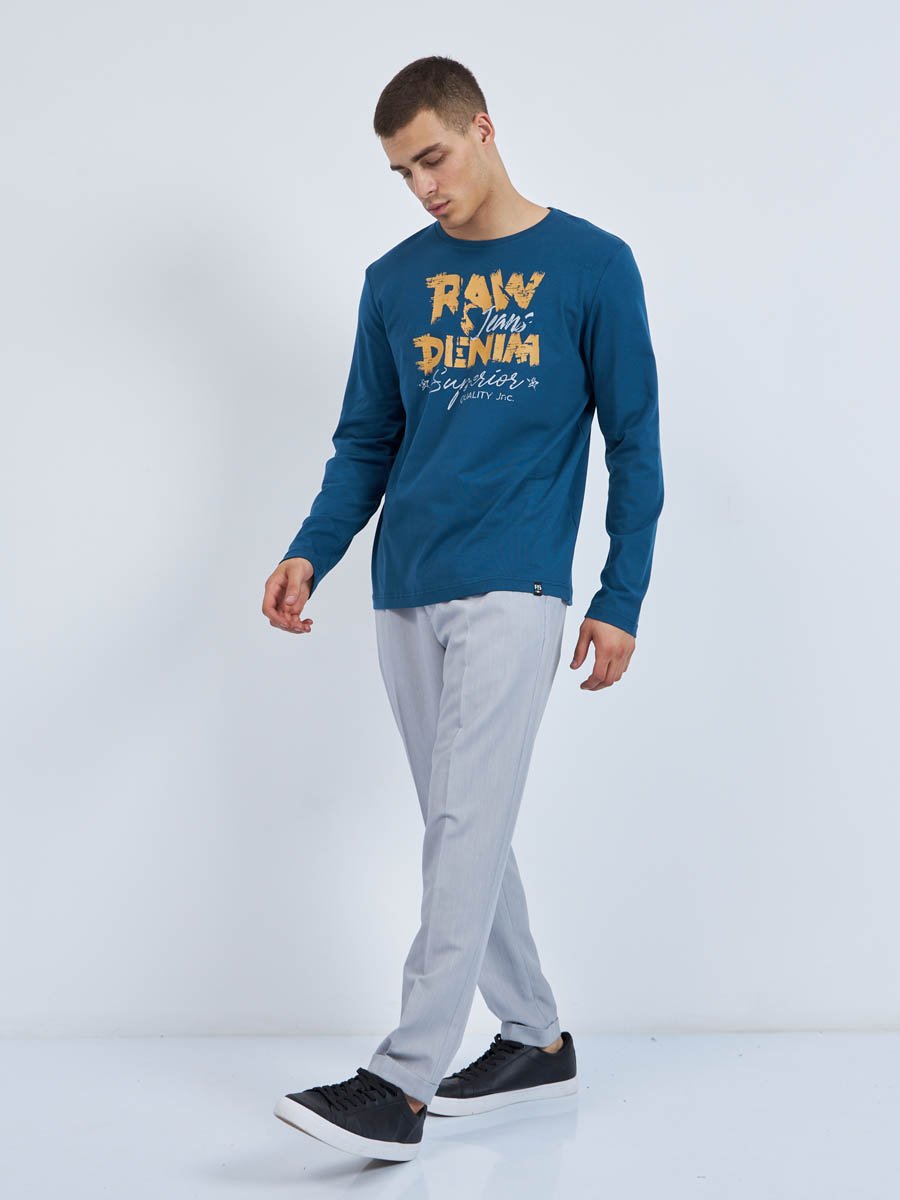 Мужская футболка F5, Regular fit (полуприлегающий силуэт), круглый вырез горловины, длинный рукав. Выполнена из классического трикотажного полотна.