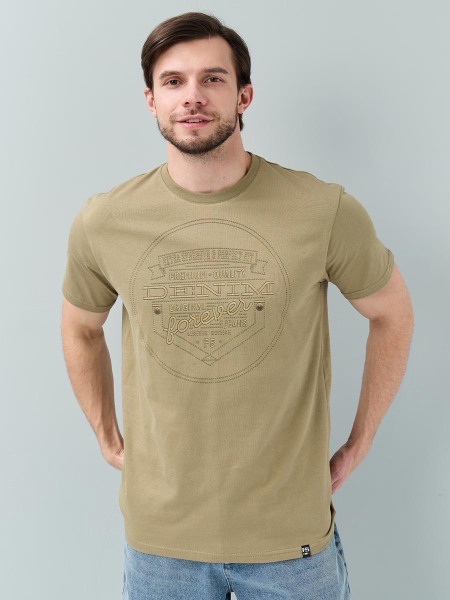 Мужская футболка F5, Regular fit (полуприлегающий силуэт), круглый вырез горловины, короткий рукав. Выполнена из классического трикотажного полотна.