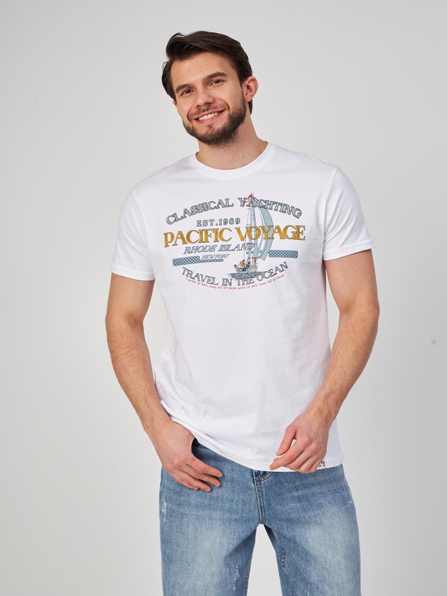 Мужская футболка F5, Regular fit (полуприлегающий силуэт), круглый вырез горловины, короткий рукав. Выполнена из классического трикотажного полотна.