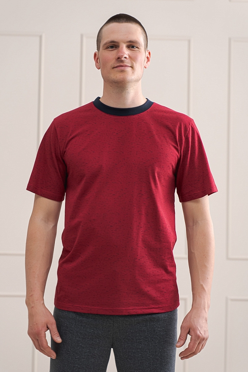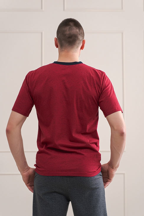 Футболка мужская из плотной кулирки Березка чёрный на винном с короткими рукавами. Мужская футболка из 100% хлопка станет прекрасным дополнением базового гардероба.