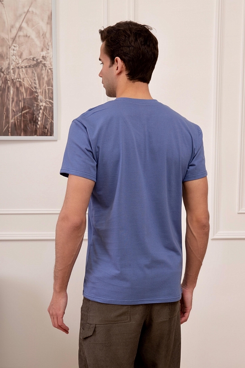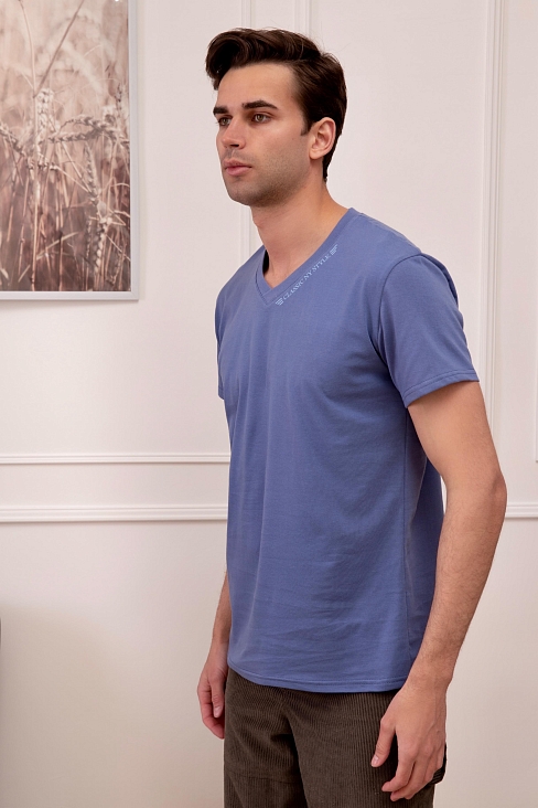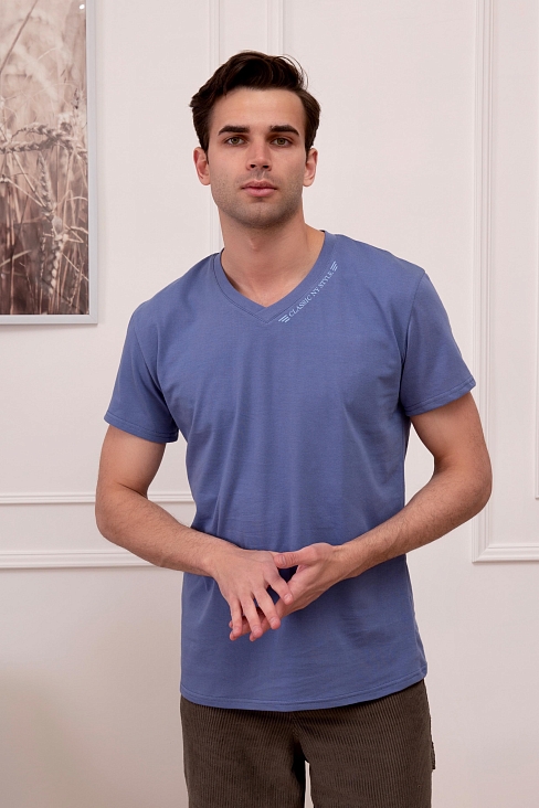 Удобная и комфортная футболка полуприлегающего кроя. Футболка с V – образным вырезом горловины и коротким рукавом