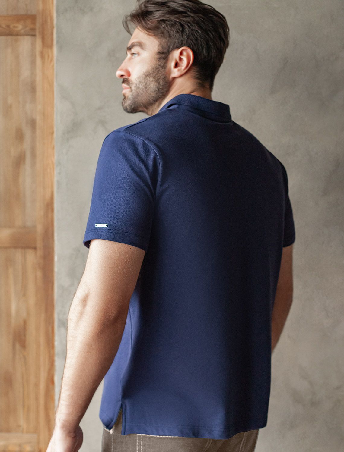 Футболка-поло из фактурного трикотажа U49.017 т.синий