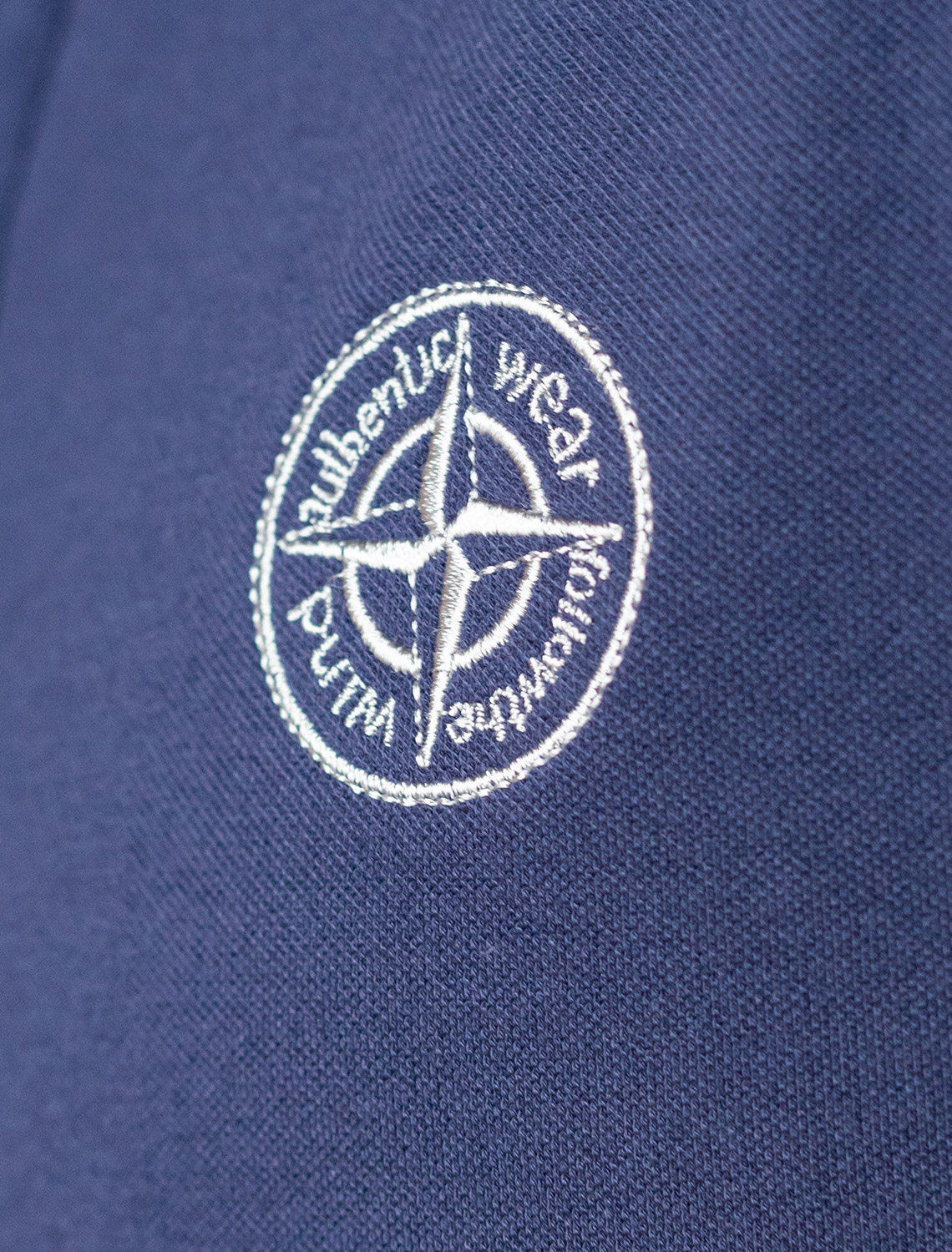 Футболка-поло выполнена из фактурного трикотажа. Модель с прямого кроя с небольшими разрезами по бокам дополнена вязаным воротником вышивкой с компасом. Премиальный хлопковый трикотаж гарантирует комфорт и износостойкость. На рукаве брендированная металлическая нашивка.