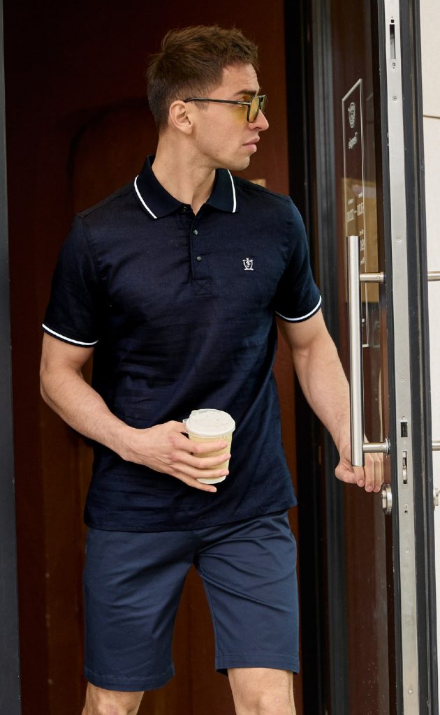 Наименование для сайта: Футболка-поло льняная мужская F011-0770 тёмно-синяя