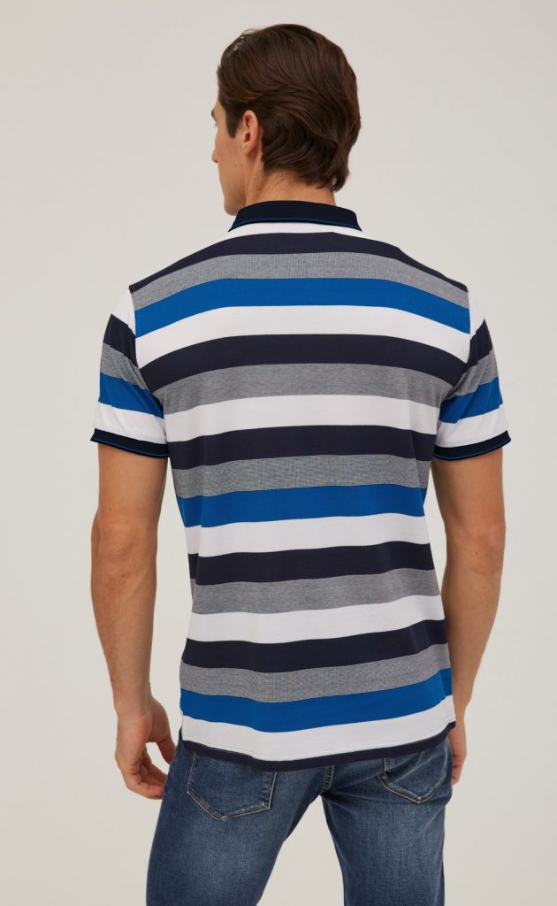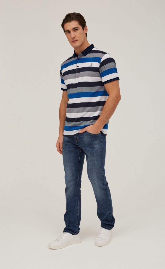 Футболка-поло мужская в полоску F311-07-044b бело-бирюзовая