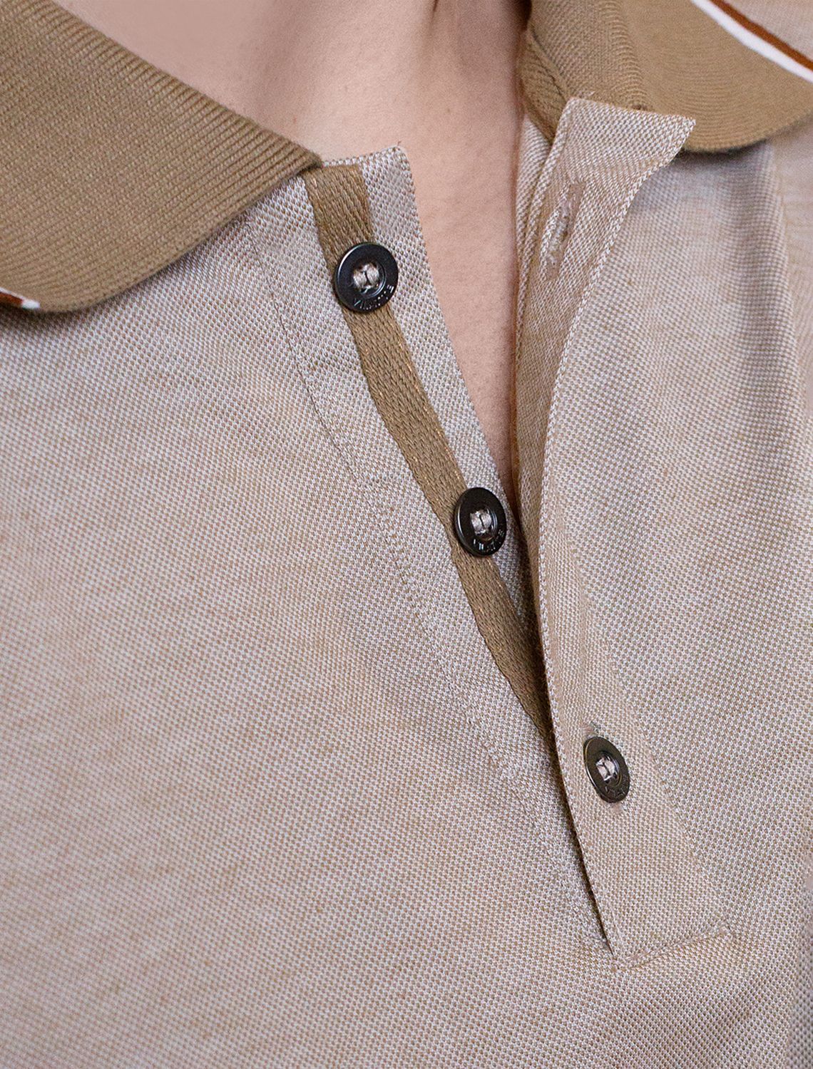Футболка поло с воротником на пуговицах из полотна пике с меланжевым плетением с эластаном U49.044 бежевый меланж