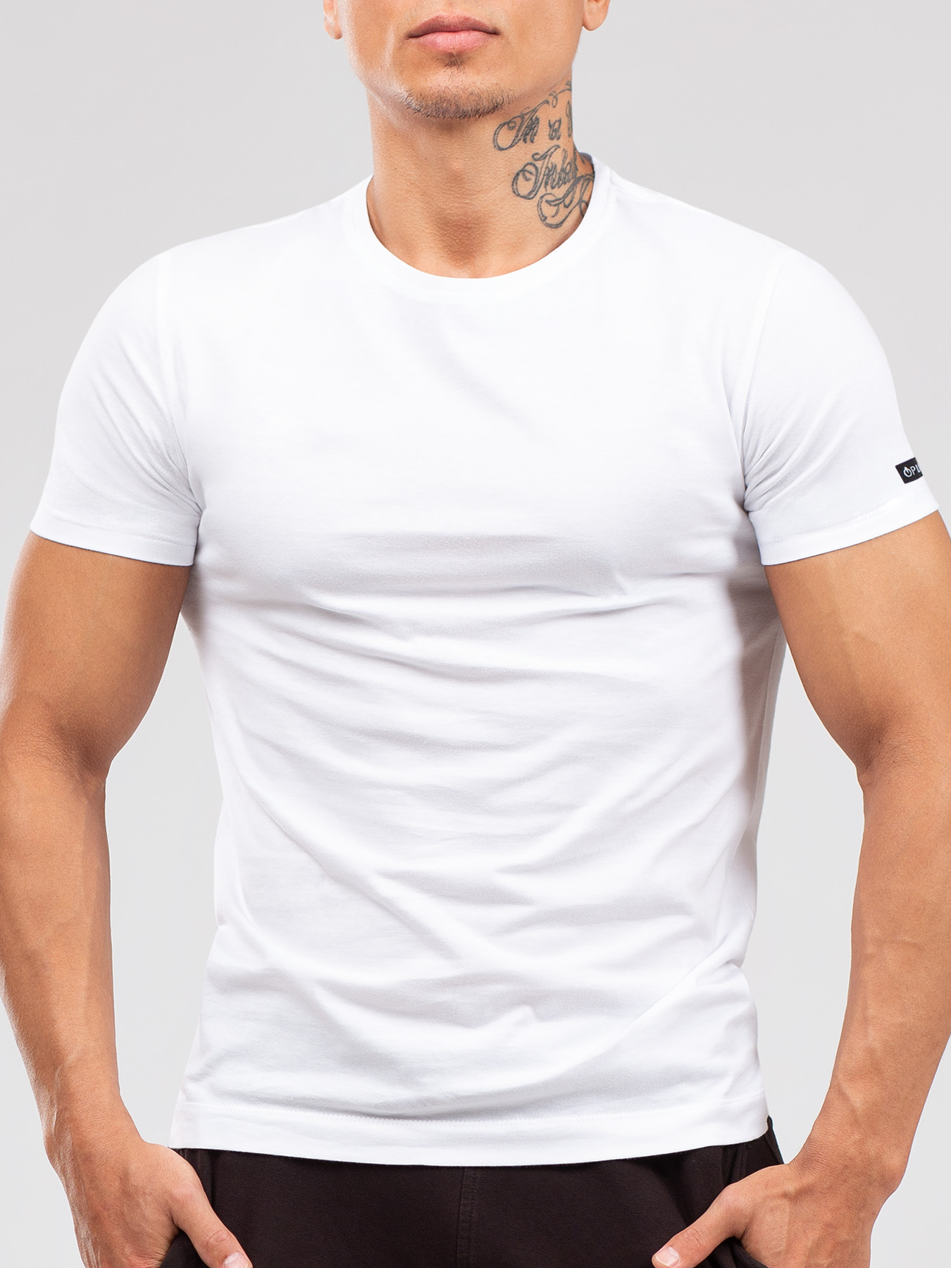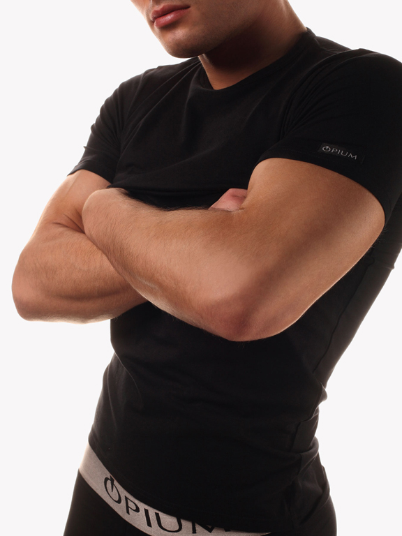 Футболка из хлопка с эластаном, комфортно облегающая фигуру, с круглым вырезом, на рукаве шеврон с фирменным логотипом OPIUM.