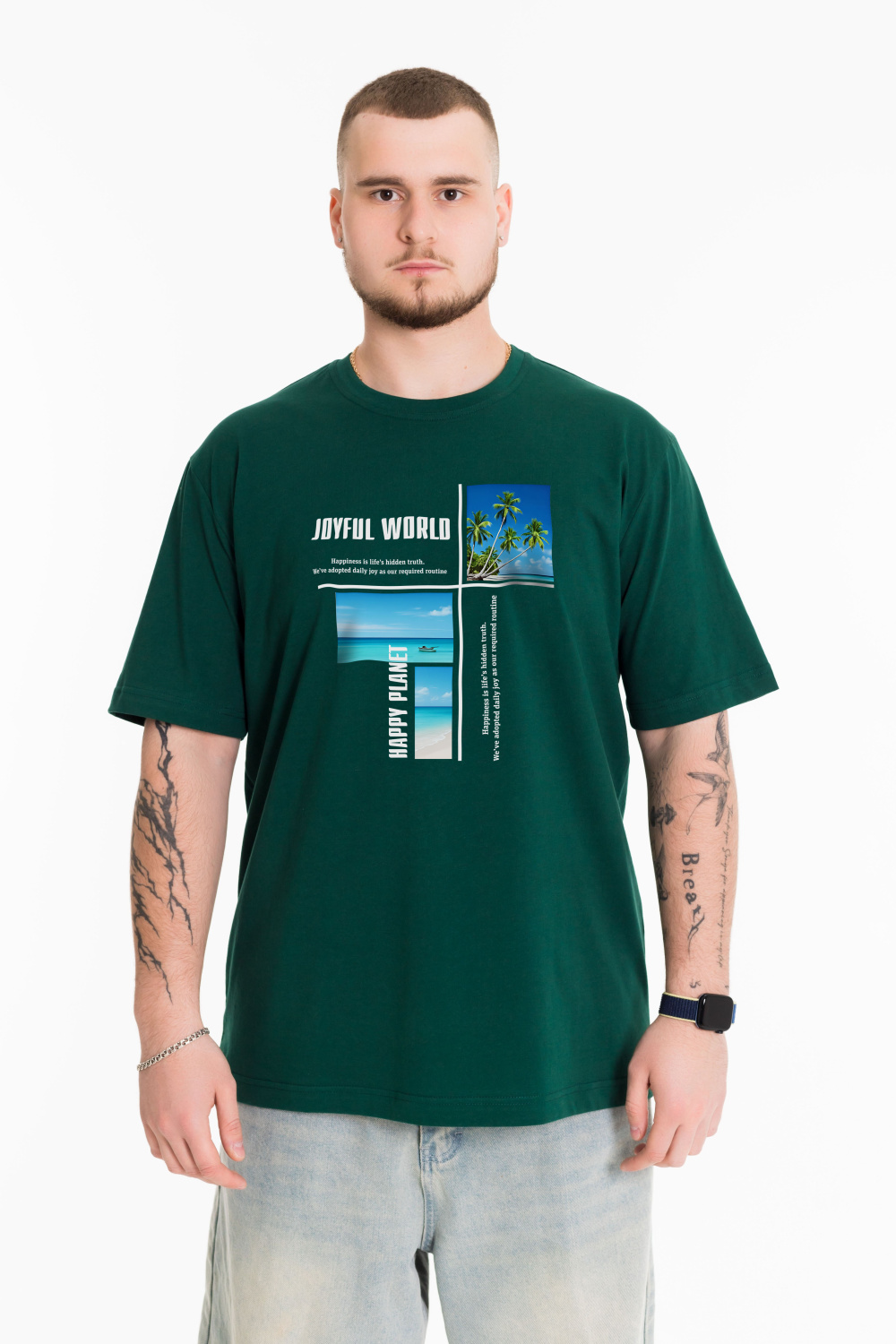 Футболка выполнена из качественного материала, который приятен на ощупь и обеспечивает хорошую вентиляцию. Зеленый цвет легко сочетается с различной одеждой, что позволяет создавать разнообразные образы.