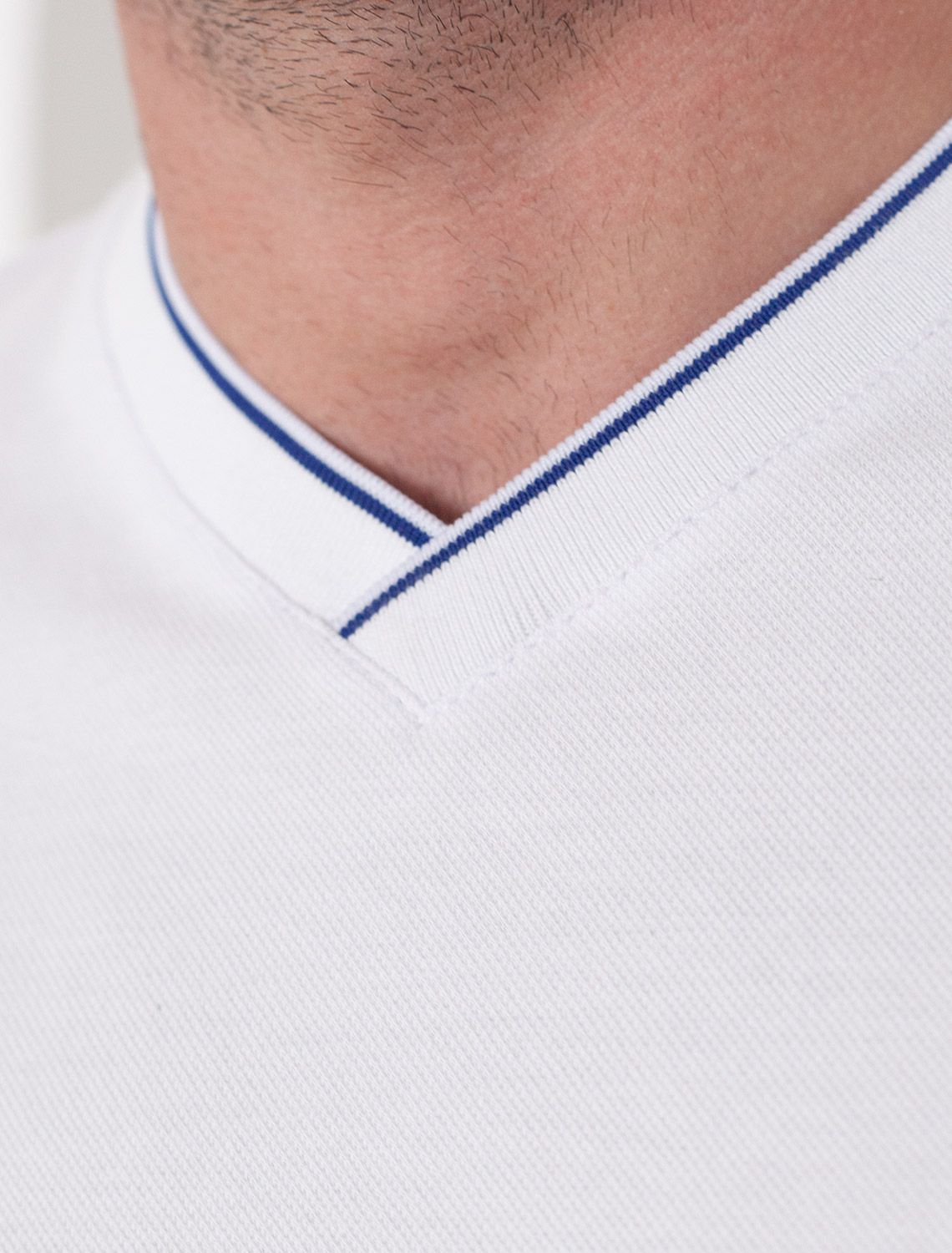 Футболка с V-вырезом из премиального хлопка с эластаном U49.056 белый с полосой
