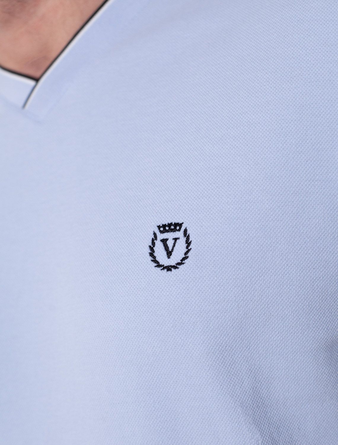 Футболка с V-вырезом из премиального хлопка с эластаном U49.056 голубой
