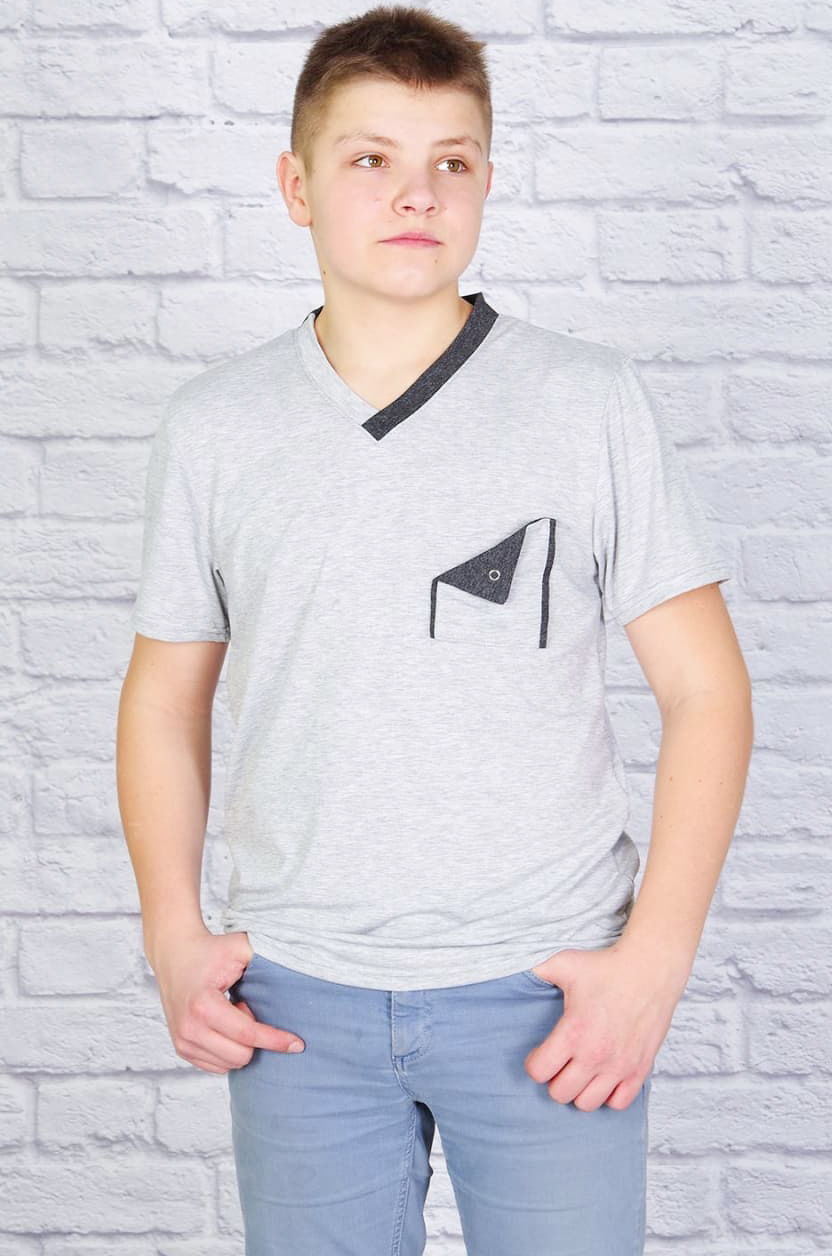 Стильная мужская футболка с V-образным вырезом и нагрудным карманом.