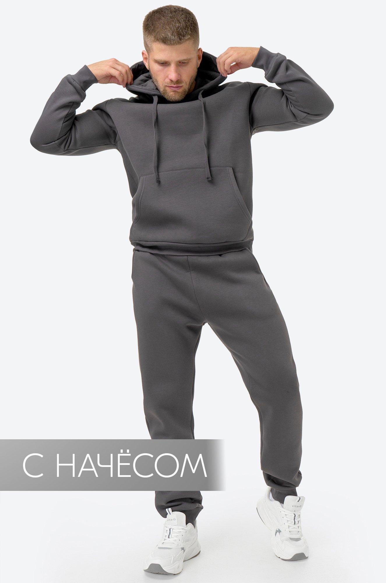 *замеры выборочные, могут незначительно отличаться. ыха на природе! Теплый мужской костюм из футера с начесом состоит из удобного худи с капюшоном и брюк джоггеров. Спортивный костюм двойка подойдет для тренировок, прогулок и повседневного использования в холодное время года.