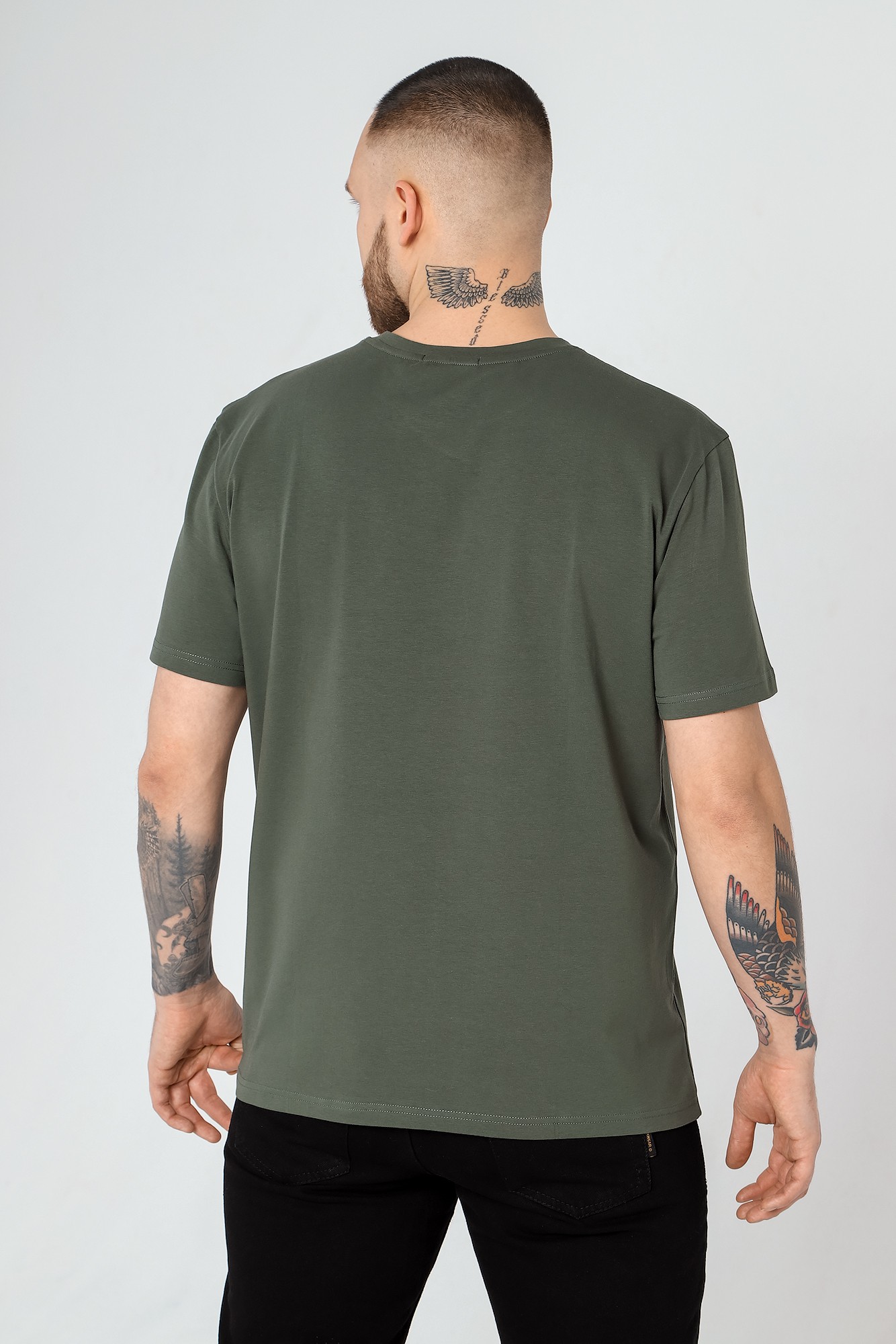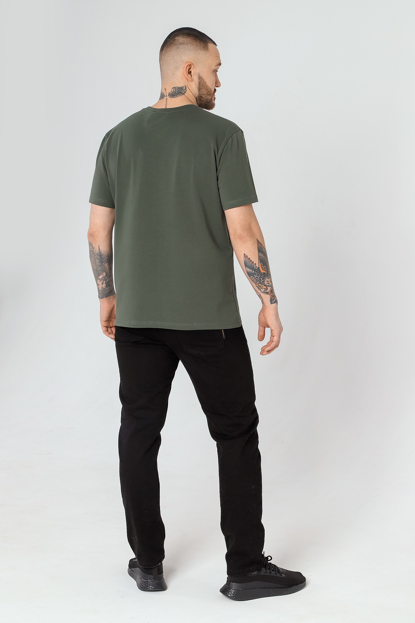 Футболка мужская из гладкокрашеного трикотажного полотна "кулирка" с лайкрой, классическогоь покроя, с коротким втачными рукавами, горловиной овальной формы, обработанной втачной планкой и принтом на полочке, выполненным в технике шелкографии.