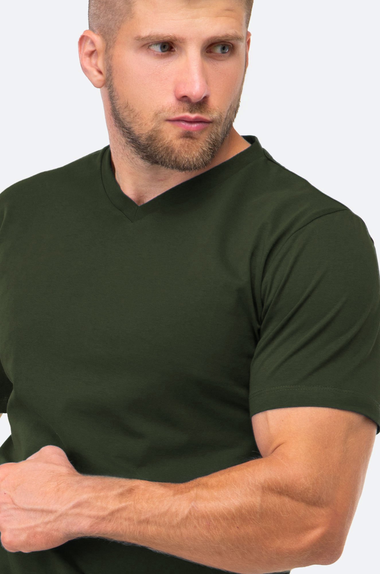 Базовая футболка защитного цвета хаки ..показатьдля мужчин – сочетание стиля и комфорта на каждый день! Камуфляжная футболка подчеркивает мужественность и добавляет образу харизмы, а v-образный вырез выгодно выделяет мужскую футболку среди других. Комфортная посадка дарит уют и свободу движений в любой ситуации.