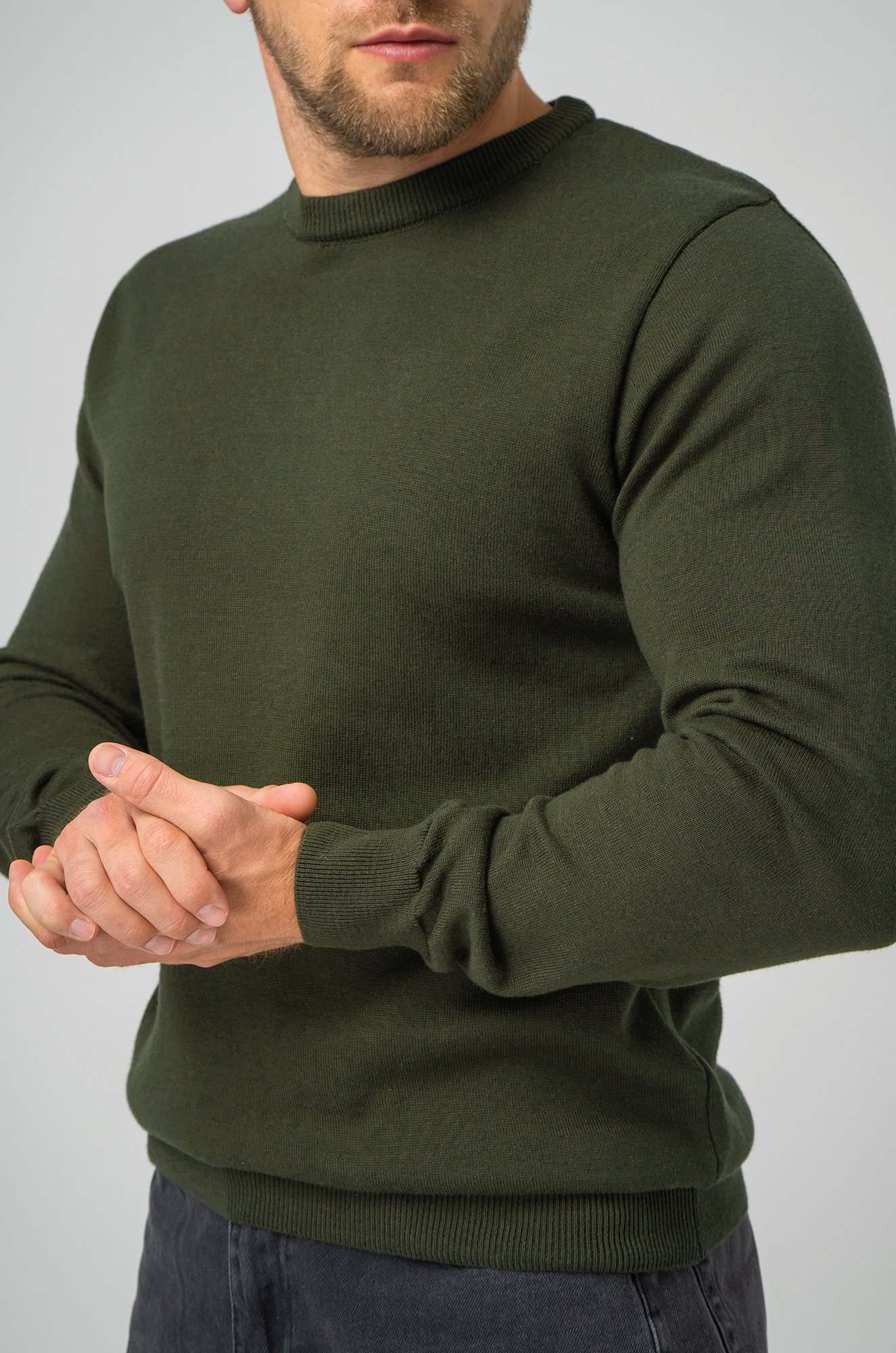 Джемпер оттенка хаки для мужчин выполнена из вязаного трикотажа: в ней будет уютно и тепло в прохладную погоду. Хлопковый свитер из мягкой пряжи с акрилом не колется, он невероятно мягкий и приятный к телу.
