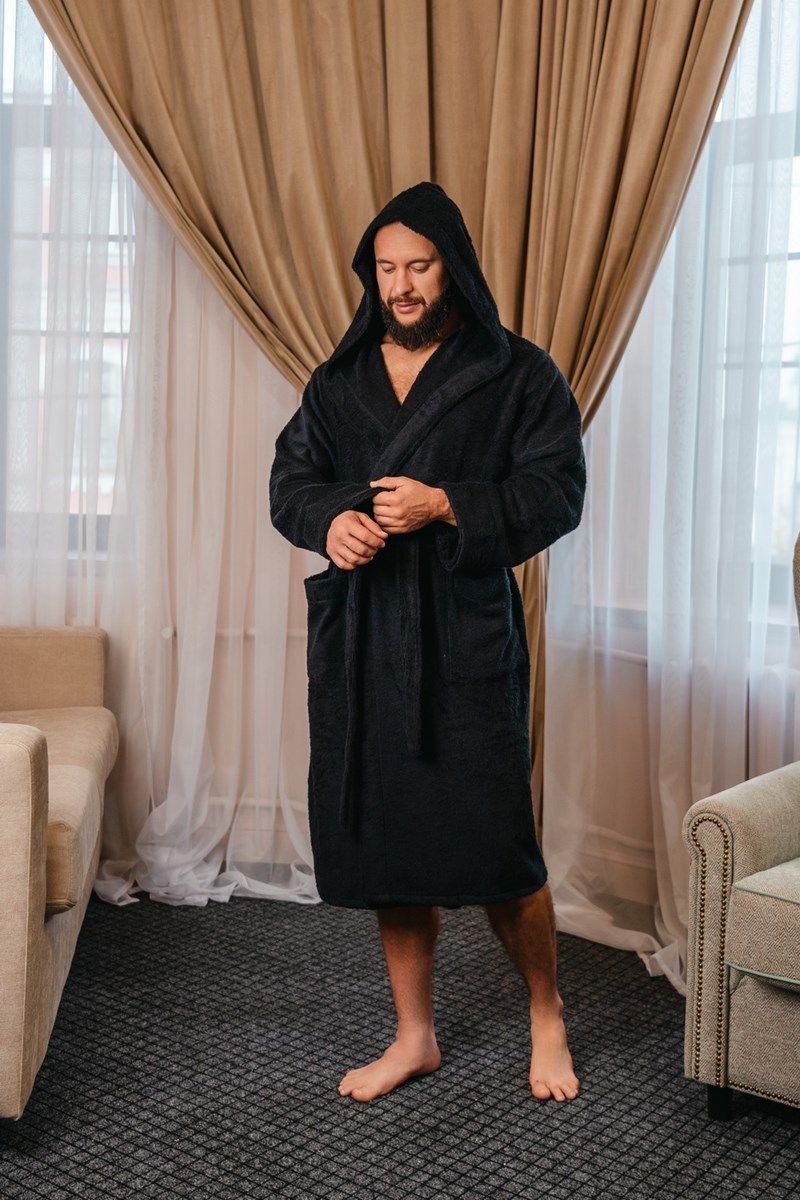 Стильный и удобный махровый халат для мужчин создан подарить максимум комфорта. Качественная махровая ткань выполнена из натурального хлопка в Узбекистане. Благодаря крою халата, он очень удобен, «сидит» свободно.