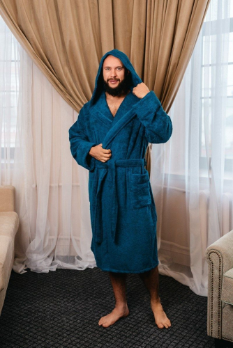 Махровая ткань из 100% хлопка идеально согревает и быстро высушивает кожу после водных процедур. Капюшон убережет шею и голову от сквозняков и резкой смене внешней температуры, особенно актуально при посещении бани в холодное время года.