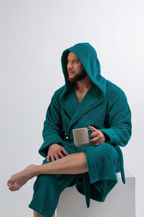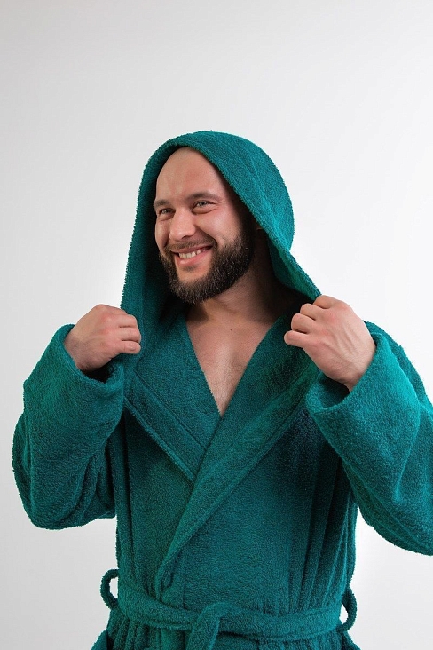 Махровая ткань из 100% хлопка идеально согревает и быстро высушивает кожу после водных процедур. Капюшон убережет шею и голову от сквозняков и резкой смене внешней температуры, особенно актуально при посещении бани в холодное время года.