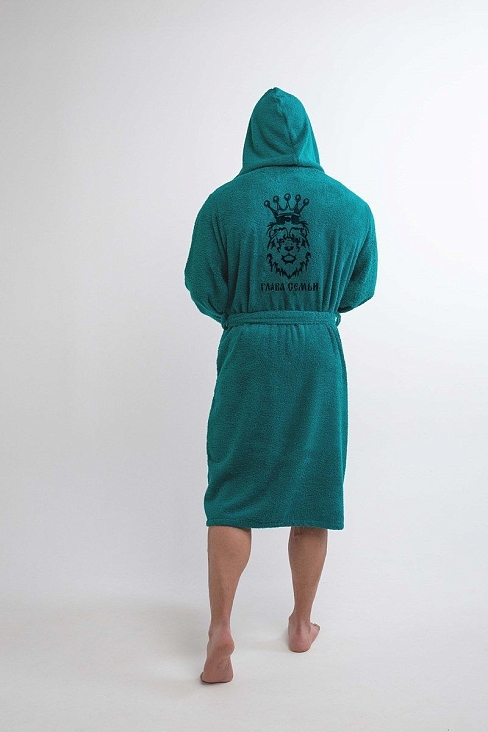 Халат махровый с капюшоном с вышивкой / изумруд