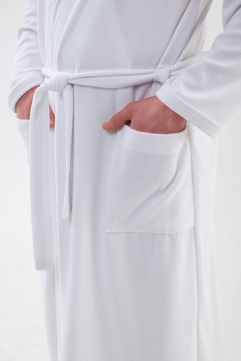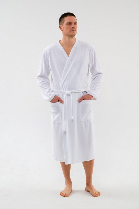 Халат мужской из махры Ренат белый на запах, с длинными рукавами.