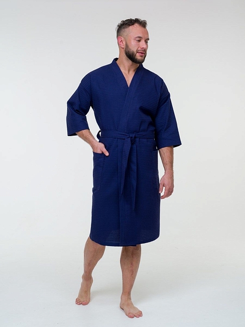 Халат вафельный / темно-синий
