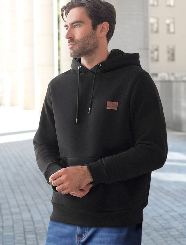 Лаконичное худи выполнено из эластичного футера. Мягкий и плотный материал хорошо пропускает воздух, а наличие ПЭ в составе способствует формоустойчивости и легкости изделия. Модель дополнена логотипом бренда. Сочетается в костюме с брюками U44.005