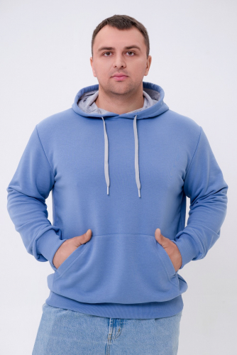 Худи мужское из футера 3-х нитки туманно-голубой с капюшоном и карманом-кенгуру.