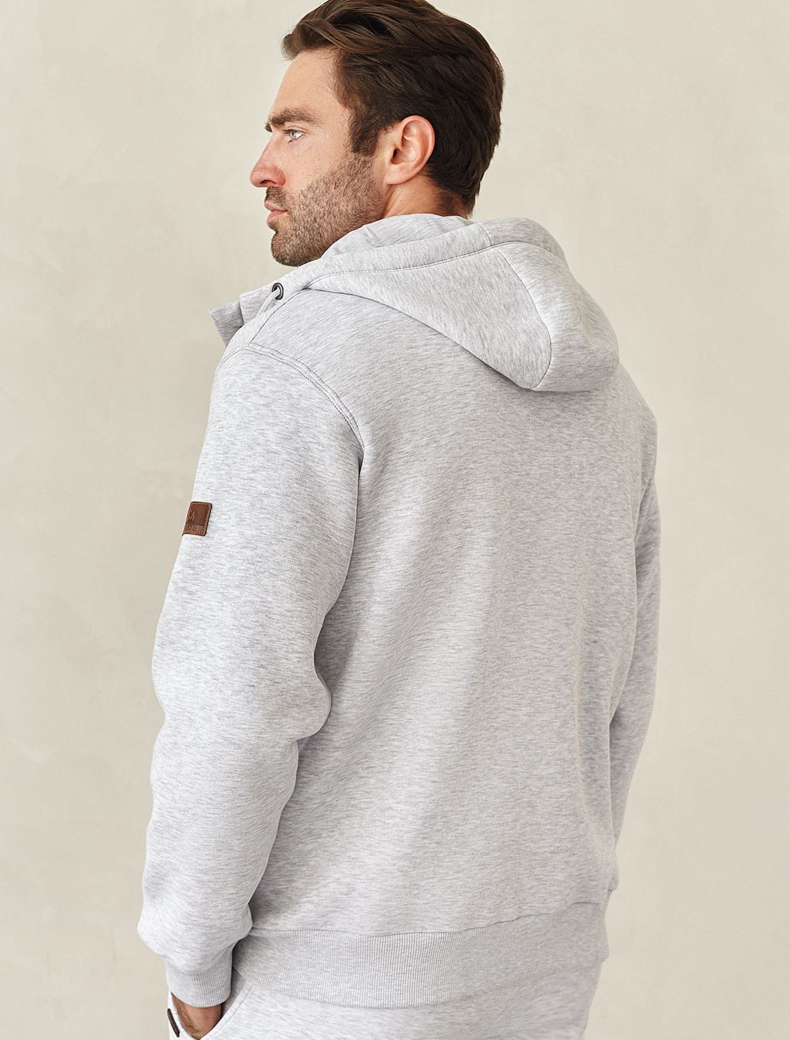 Худи на молнии выполнено из премиального эластичного футера трехнитки с теплым начесом. Модель с капюшоном и воротом стойка дополнена боковыми карманами и нашивкой с логотипом бренда из эко-кожи. Ранней осенью или поздней весной можно носить в качестве верхней одежды. Высококачественная фурнитура цвета темное серебро. Изделие сочетается в костюме с брюками U44.006