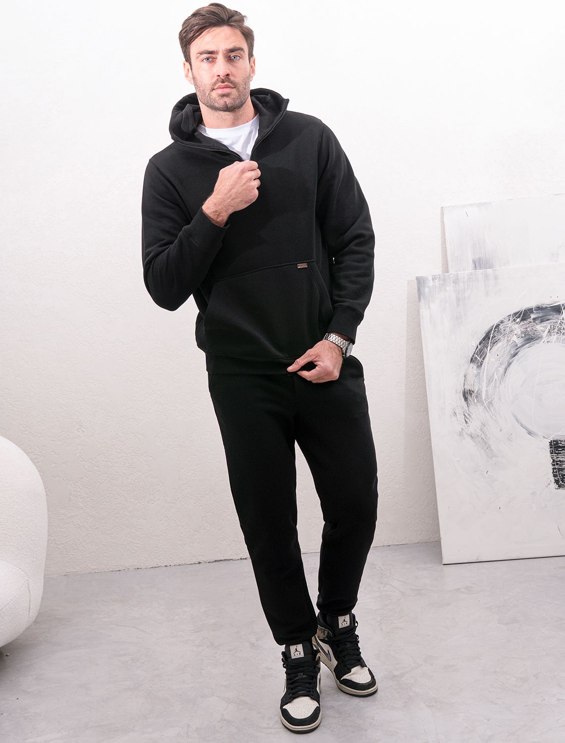 Ст.цена 2690р Худи с воротом на молнии из теплого футера-трехнитки U49.022 черный