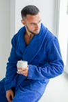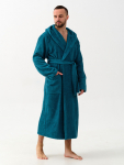 Пижама мужская состоит из футболки и брюк. Футболка с длинным втачным рукавом. Круглый вырез горловины на полочке и имитация планок окантованы бейкой с застежкой на петли и пуговицы. На полочке нагрудный карман. Футболка выполнена из гладкокрашеного полотна. Брюки прямого силуэта с боковыми карманами в швах с цельнокроеным поясом на резинке.