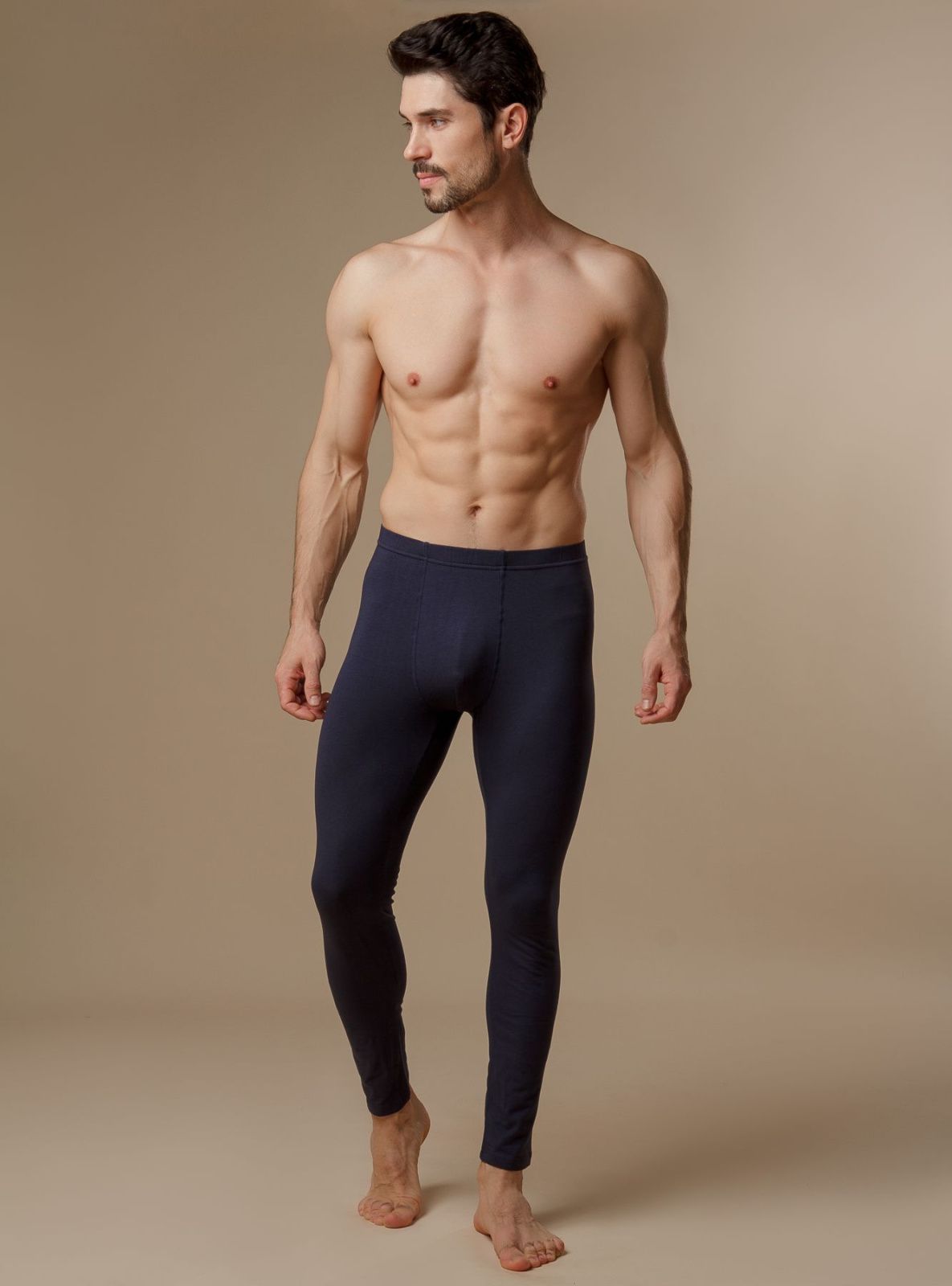 Мужские кальсоны торговой марки Индефини. Кальсоны из хлопка, синего цвета, на мягкой резинке, в классическом стиле.
