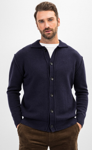 Кардиган мужской однотонный темно-синего цвета на пуговицах, выполненный в лаконичном стиле. Кардиган застегивается на пуговицы в тон изделия, имеет пиджачный воротник и прямые рукава. Стильный мужской кардиган надежно защитит Вас от холода и послужит альтернативой толстовке. Кардиган выполнен из мягкого приятного на ощупь трикотажного полотна с антипиллинговым эффектом (не образуются катышки), не линяет, долгое время не теряет внешний вид, если стирать при температуре 30С. Мужской кардиган от производителя прекрасно сидит по фигуре, а мягкий трикотаж (состав 50% акрил, 40% полиэстер, 10% шерсть) дарит максимальный комфорт. Теплый мужской кардиган представлен оптом как стандартными размерами так и большими размерами с 58 по 62. Свитер мужской на молнии – практичная и не заменимая вещь, которая сочетается любыми вещами гардероба. Это универсальный предмет круглогодичной одежды на холодную погоду, подходящий как для работы в офис, так и для повседневной носки круглый год или на учебе. Это идеальная замена обычному джемперу на зиму, а в осень и демисезон – альтернатива верхней одежде. Мужской кардиган можно купить оптом от производителя в Москве. Fine Joyce динамично развивающийся российский бренд. Fine Joyce — высокое качество по оптимальной цене!