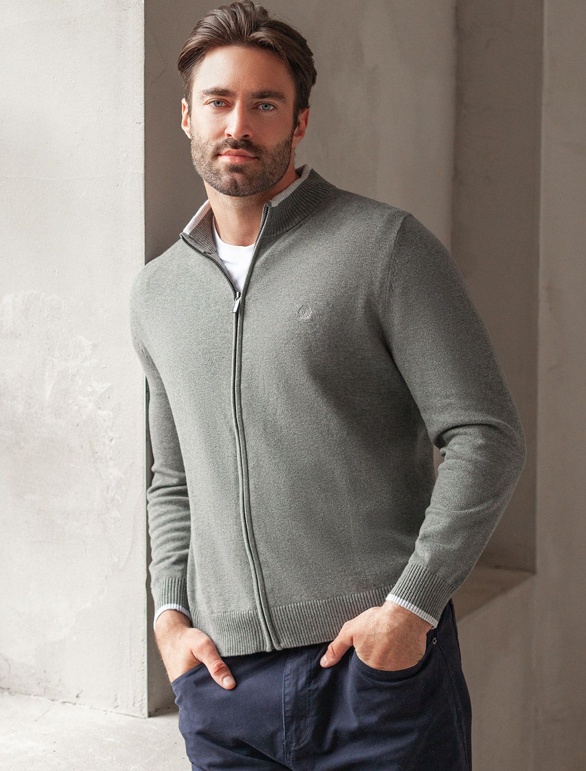 Кардиган на молнии из хлопка с нейлоном U31.000 серый меланж