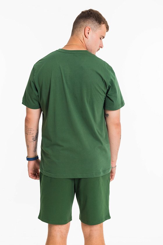 Мужской костюм — отличный выбор для повседневной носки. Он состоит из футболки и шорт, выполненных из разных материалов, но отлично сочетающихся друг с другом.
