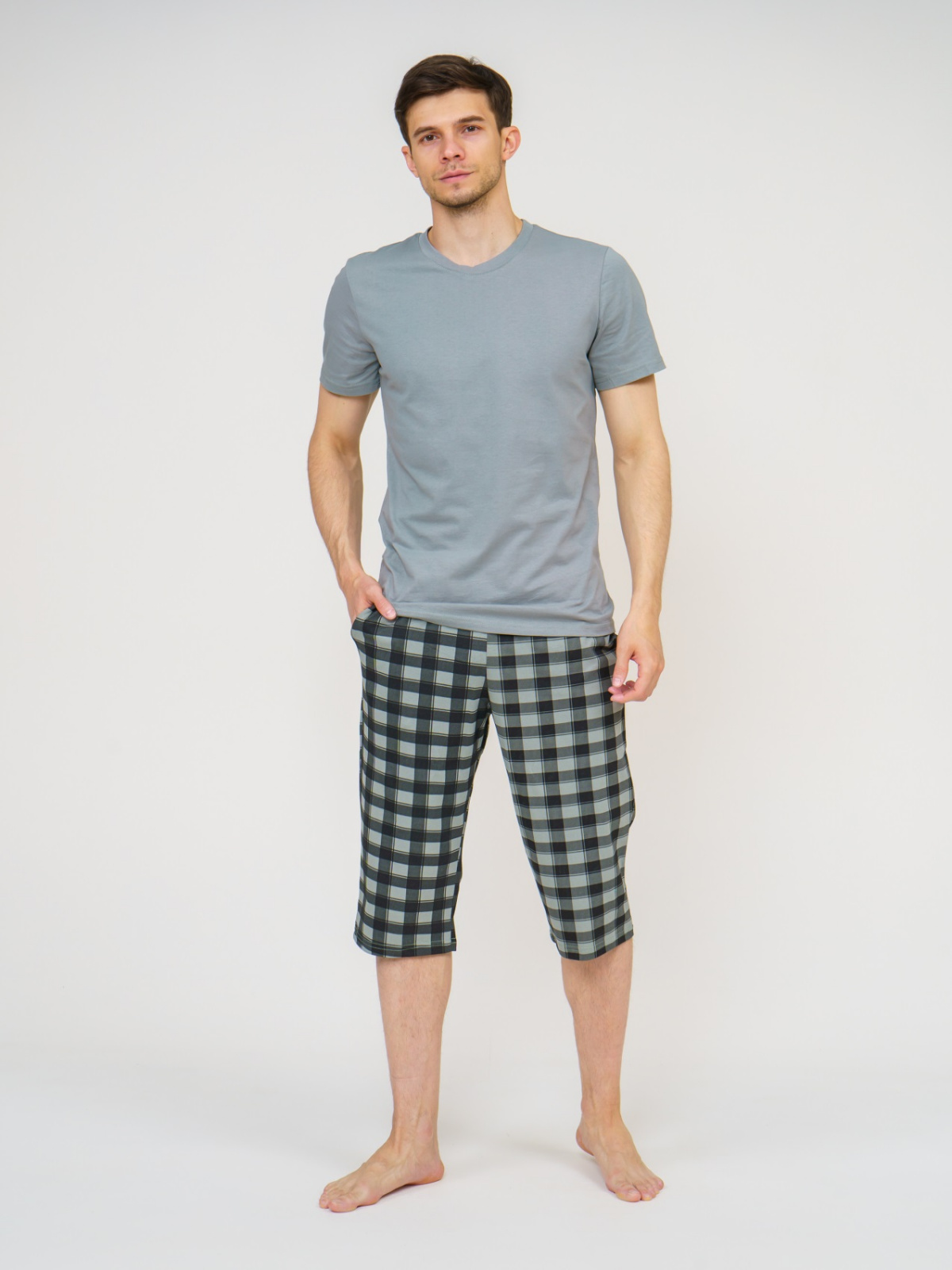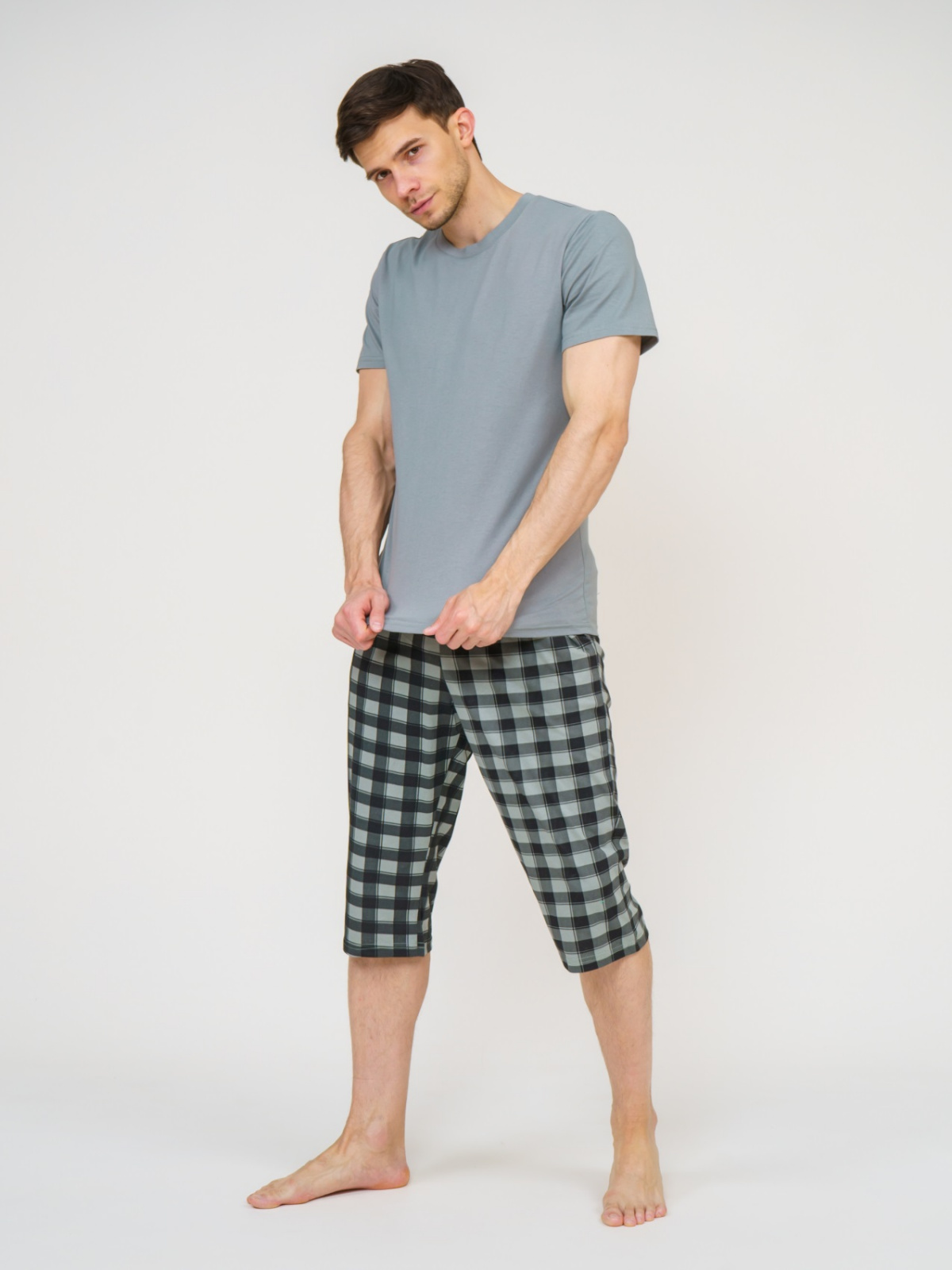 Стильный и удобный мужской домашний костюм отличный вариант одежды на все случаи жизни. Комплект для дома с футболкой и шортами сшит из материала, в составе которого 100% хлопок. Удобные и дышащие бриджи с двумя карманами и средней посадкой. У них универсальная длина, поэтому этот комплект смело можно носить не только как домашний, но или как пляжный или спортивный костюм. Яркая однотонная футболка без лишних элементов отделки порадует мужчин своим удобством и комфортом. Классический крой Футболки с коротким рукавом и круглым вырезом подойдет любому типу фигуры и любому возрасту.