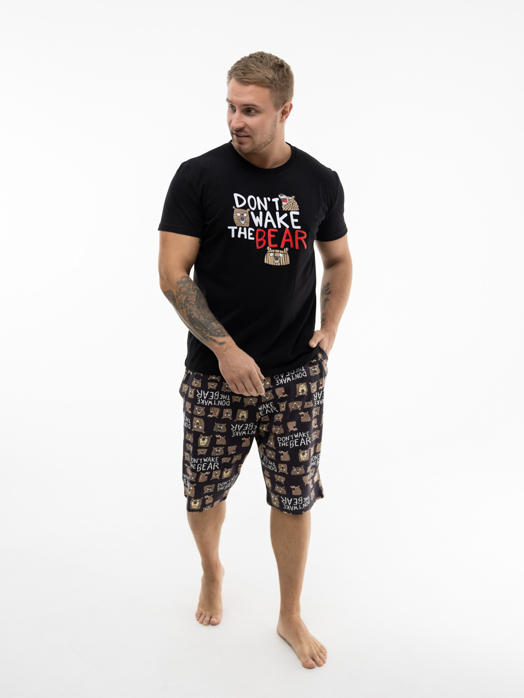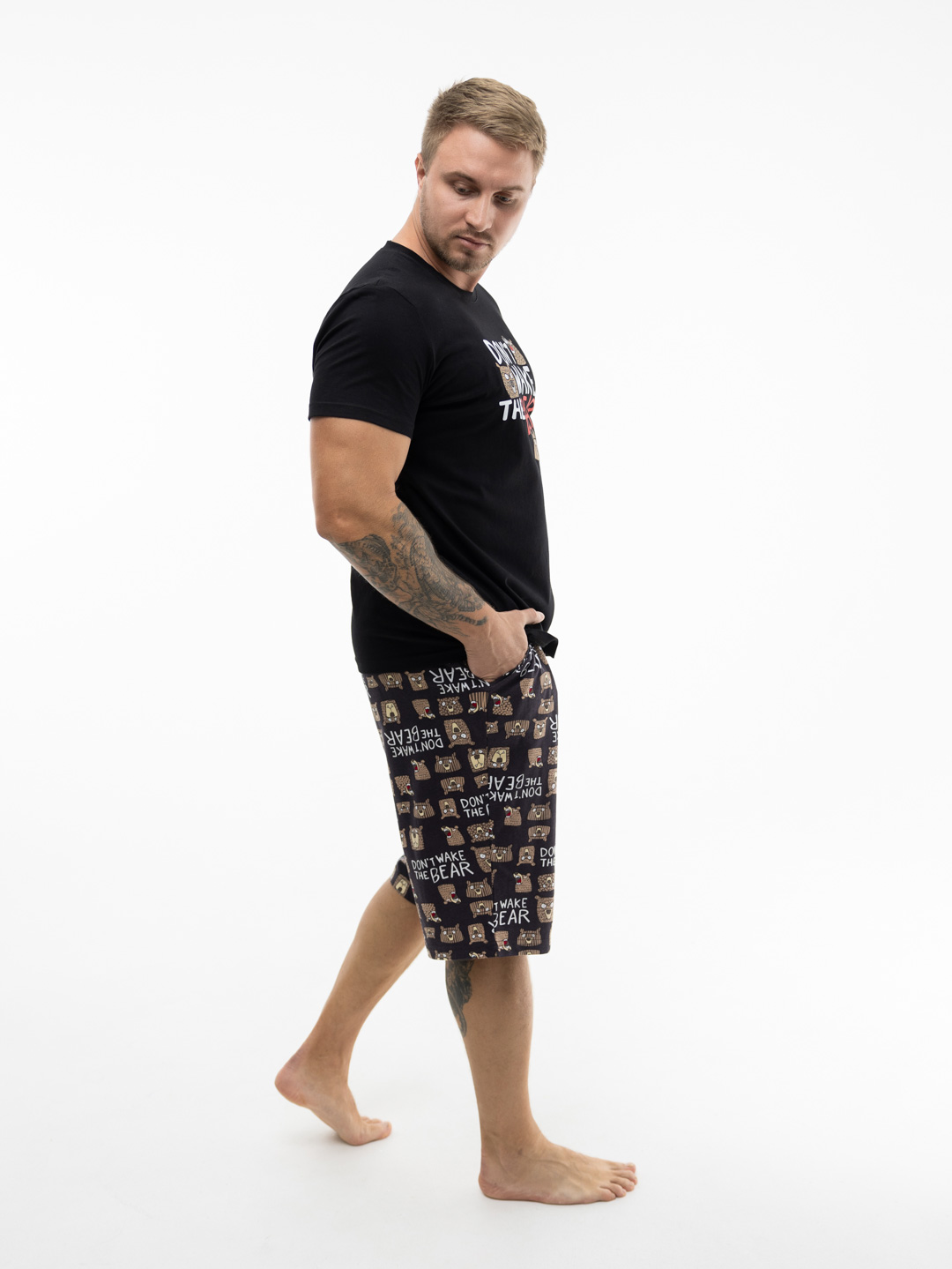 Мужской костюм с шортами - это стильное и модное решение для дома. Материал 100% хлопок, турецкого производства. Футболка с коротким рукавом, О-образной горловиной и печатью. Шорты длиной до колена с караманами в боковых швах, на удобном поясе с эластичной резинкой обеспечат оптимальную посадку на любую фигуру.