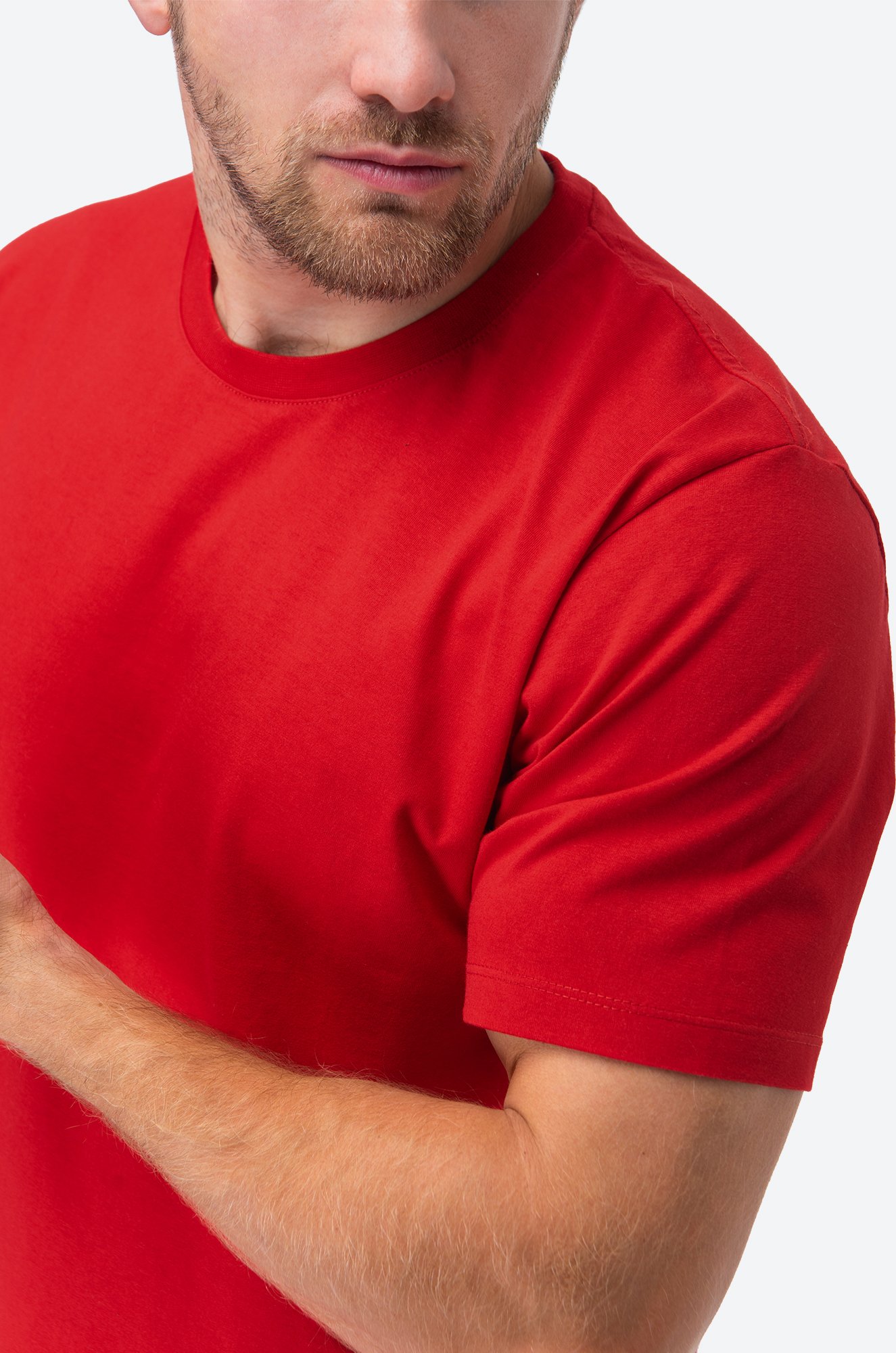 Удлиненная красная футболка легко вписывается в любой стиль: smart casual (смарт кэжуал), спортивный и даже офисный деловой. Хлопковая футболка подходит на каждый день: для расслабленных повседневных образов, для спорта, тренировок, фитнеса и для офиса.