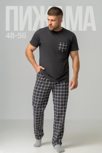 Модель Артем, рост 172 см, параметры 113-82-100 см. На нем пижама размера 52.