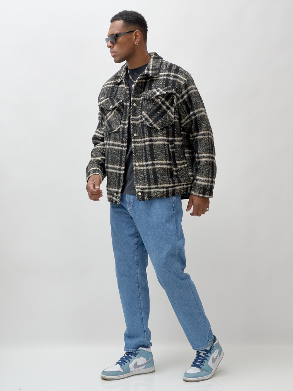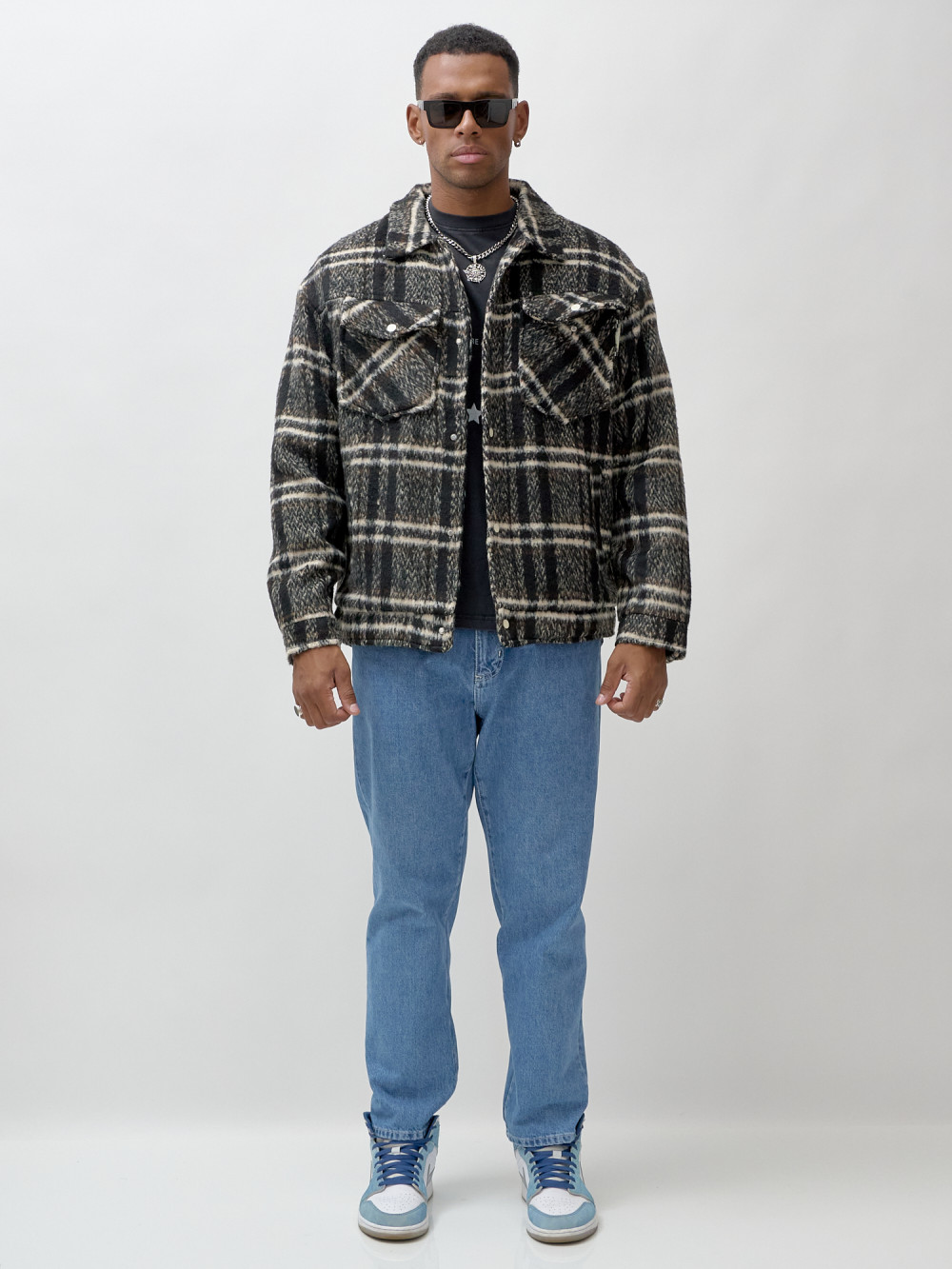 Куртка рубашка шерстяная в клетку мужская демисезонная черного цвета 58596Ch