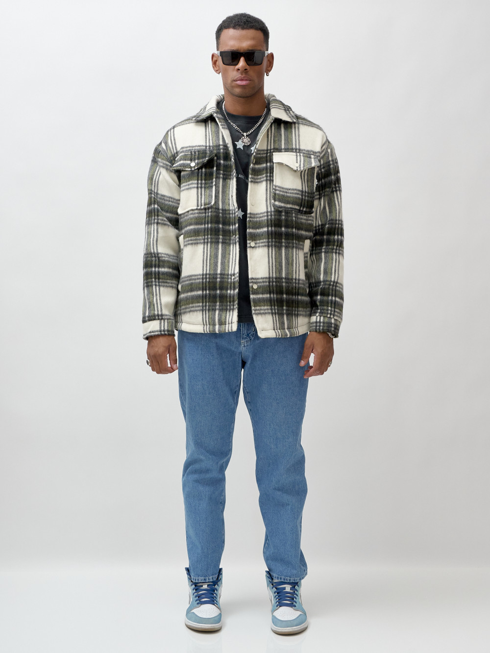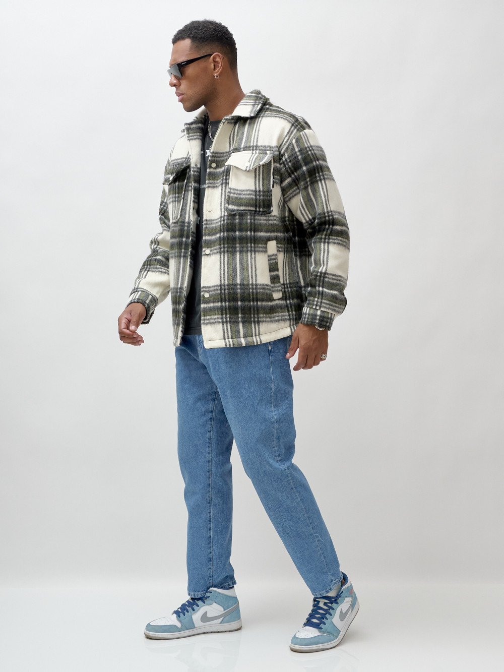Куртка рубашка шерстяная в клетку мужская демисезонная цвета хаки 58569Kh