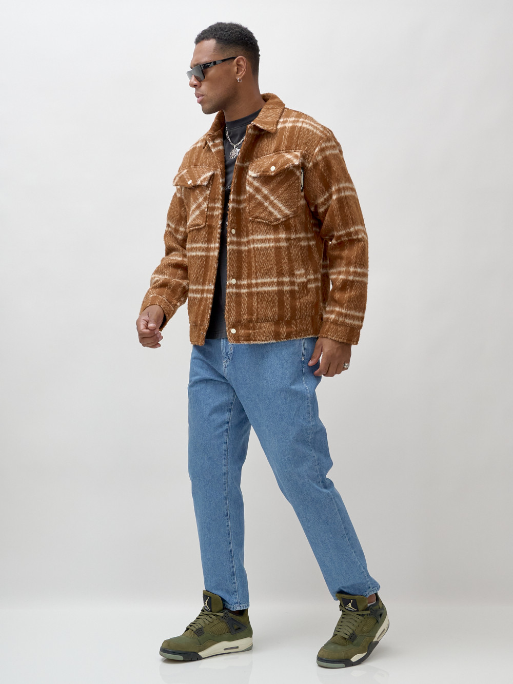 Куртка рубашка шерстяная в клетку мужская демисезонная горчичного цвета 58596G