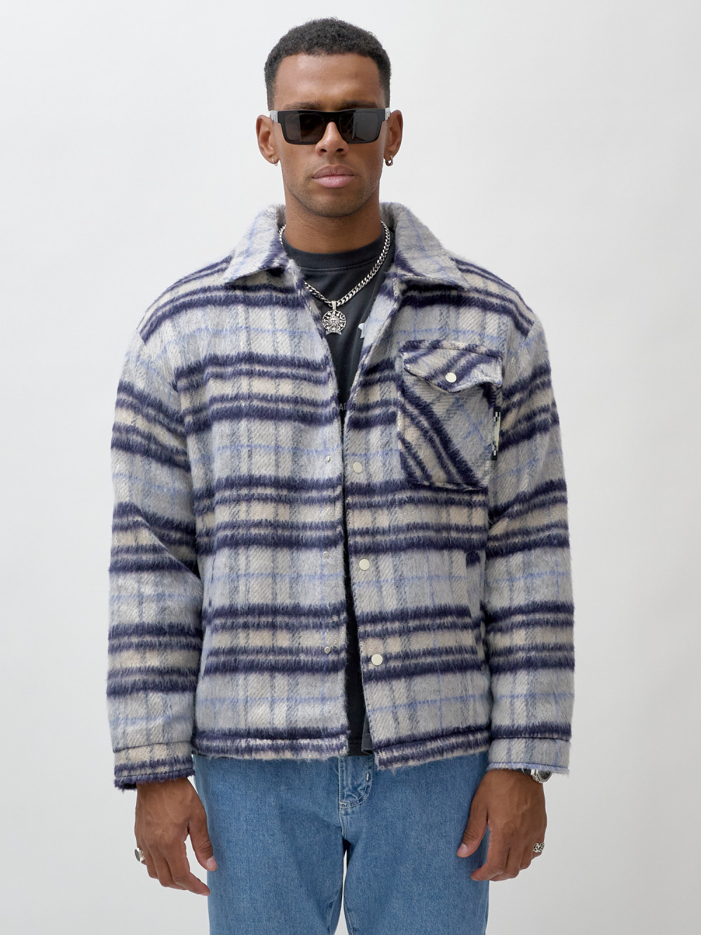 Куртка рубашка шерстяная в клетку мужская демисезонная темно-синего цвета 58565TS